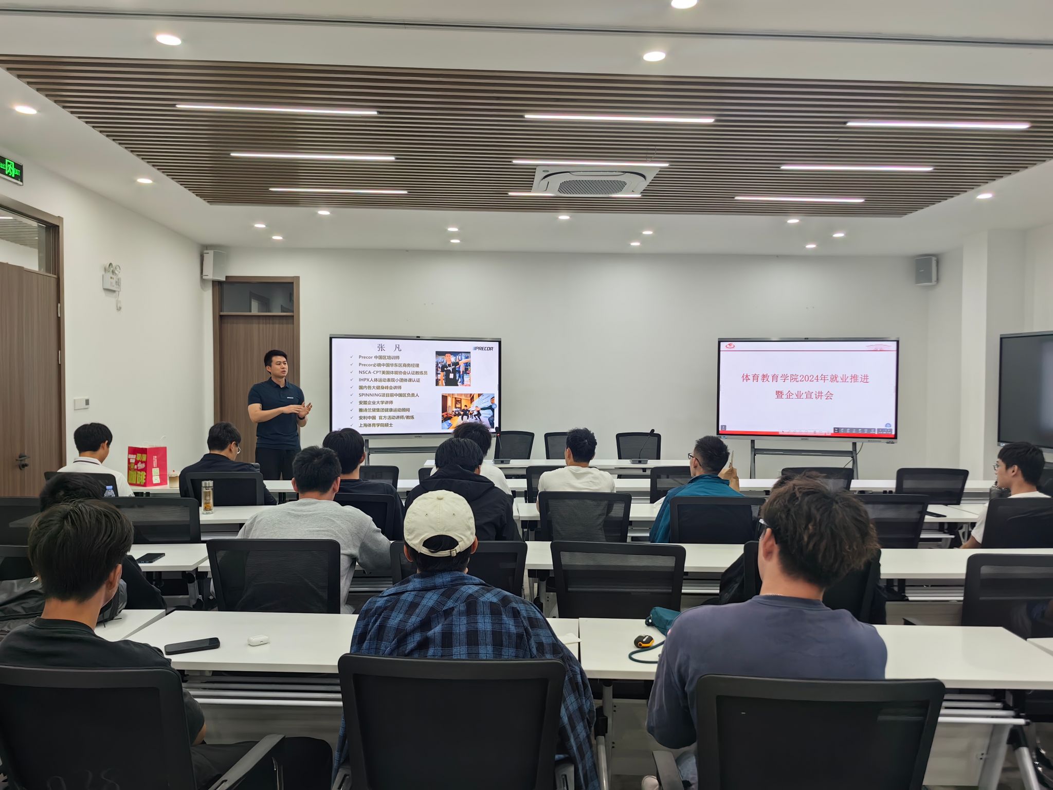 为进一步推进学院毕业生就业工作,有效解决学校专业教育和社会需求衔接问题,5月15日,学院举行2024年就业推进暨企业宣讲会。休闲与社会体育教学团队刘东宁、陆丽萍老师以及大三、大四休闲专业和社会体育指导与管理专业学生参加宣讲会。