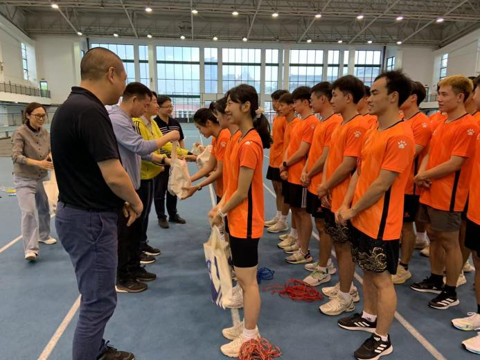 2024年6月5日,2138cn太阳集团古天乐党委书记王红英、党委副书记、院长张庆文、党委副书记、副院长曹智超、副院长朱昆、组织员孙一可、办公室主任马婵婵一同在室内田径馆慰问我院花样跳绳队备战全国第十二届少数民族传统体育运动会的运动员和教练员。
