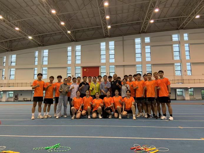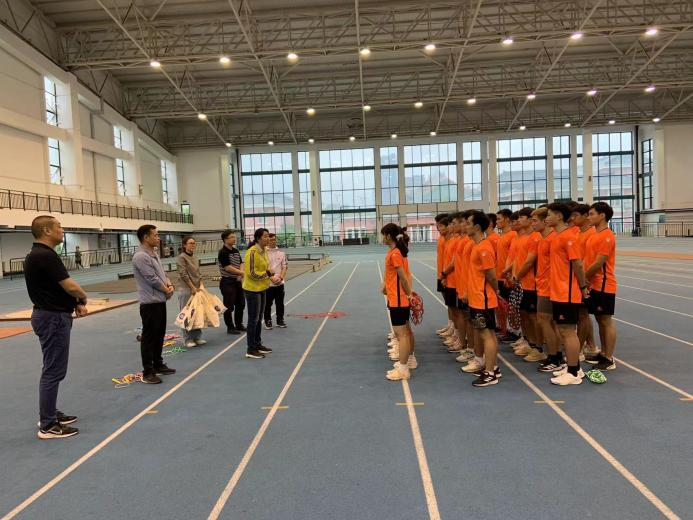 全国少数民族传统体育运动会每四年一届,受市民宗委、市体育局以及相关区县统战部的委托,这是我校第五次参赛。花样跳绳队在韩耀刚教练的带领下正在加紧训练中。领导们来到室内田径馆,现场观看了运动员的训练并进行了亲切的慰问。王红英书记对运动员、教练员的辛勤付出表示肯定,希望大家抓住本次参赛机会,始终保持昂扬的斗志和良好的状态,团结协作、顽强拼搏,力争在本届运动会上再创佳绩。