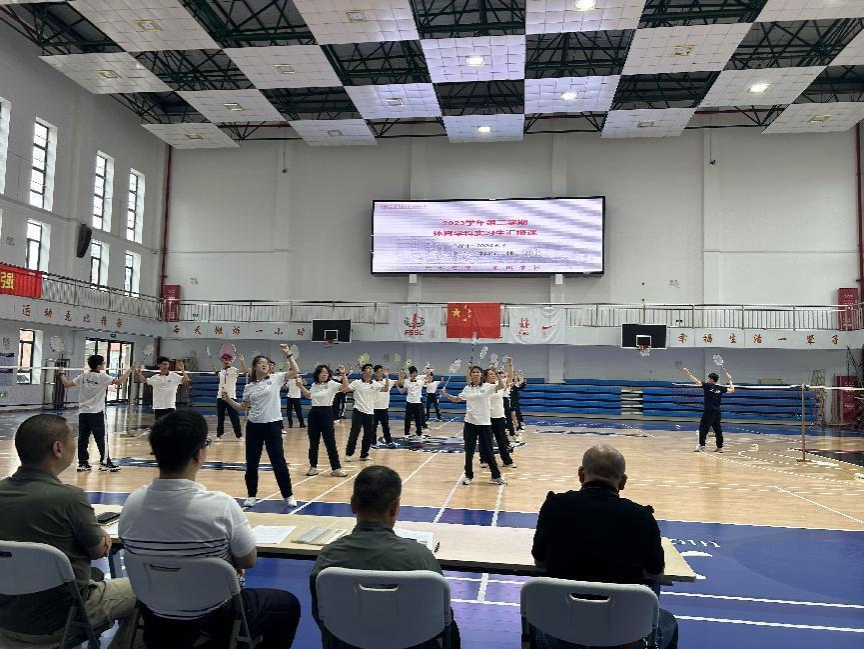最后,2138cc太阳集团实习生李澳渝上公开课《羽毛球——后场吊、杀上网组合技术及运用》,交大附中指导教师及2138cc太阳集团领导老师现场观摩并指导。