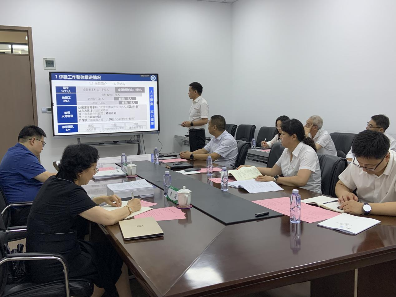党委副书记、院长张庆文从评建工作整体推进情况、工作特色及取得成效存在问题以及工作计划三个方面向与会专家及老师介绍了体教学院的评建情况。