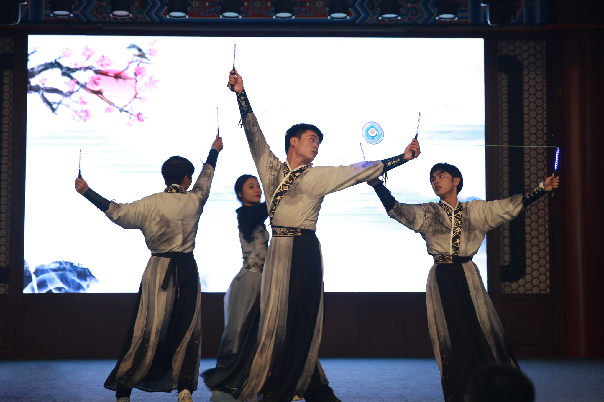 会上,师生共同带来了精彩的节目。空竹表演、花样跳绳、复古舞蹈轮番上演,节目精彩,现场氛围温馨热闹。