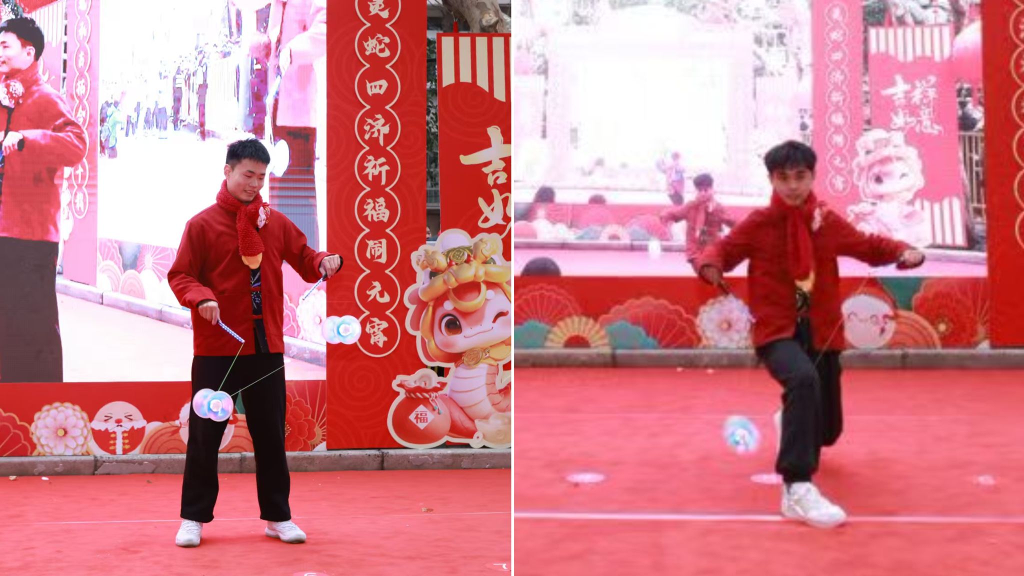在全程参与节目设计过程中,空竹指导教师杨小凤表示:“2025年国家印发《关于进一步培育新增长点繁荣文化和旅游消费的若干措施》和2025年全国春节文化等一系列促文旅消费政策给非遗空竹项目带来了很多服务社会,展现项目的魅力的机会。希望更多热爱传统文化的大学生能参与到这各种吃、喝、玩、乐非遗文化空间市井烟火互动体验和创新表达中,共同为城市化空间注入传统节庆的灵魂。”此外,团队还与中小学开展“非遗进校园”活动,培养青少年对传统体育的兴趣,形成“高校引领、社会联动”的传承模式。