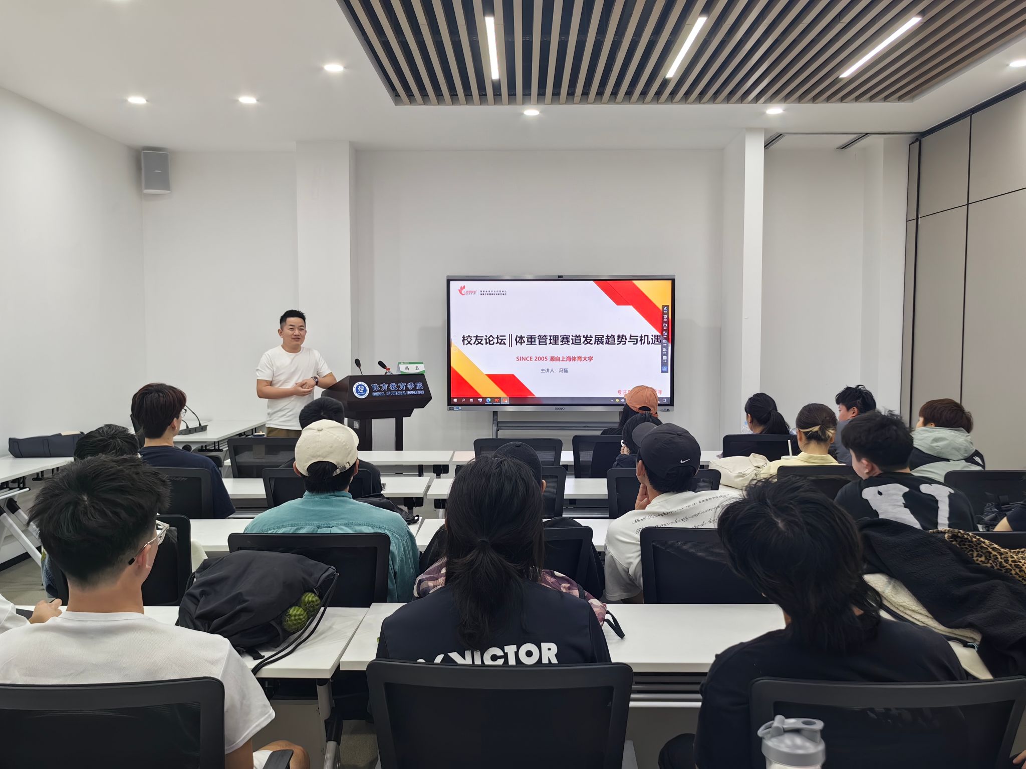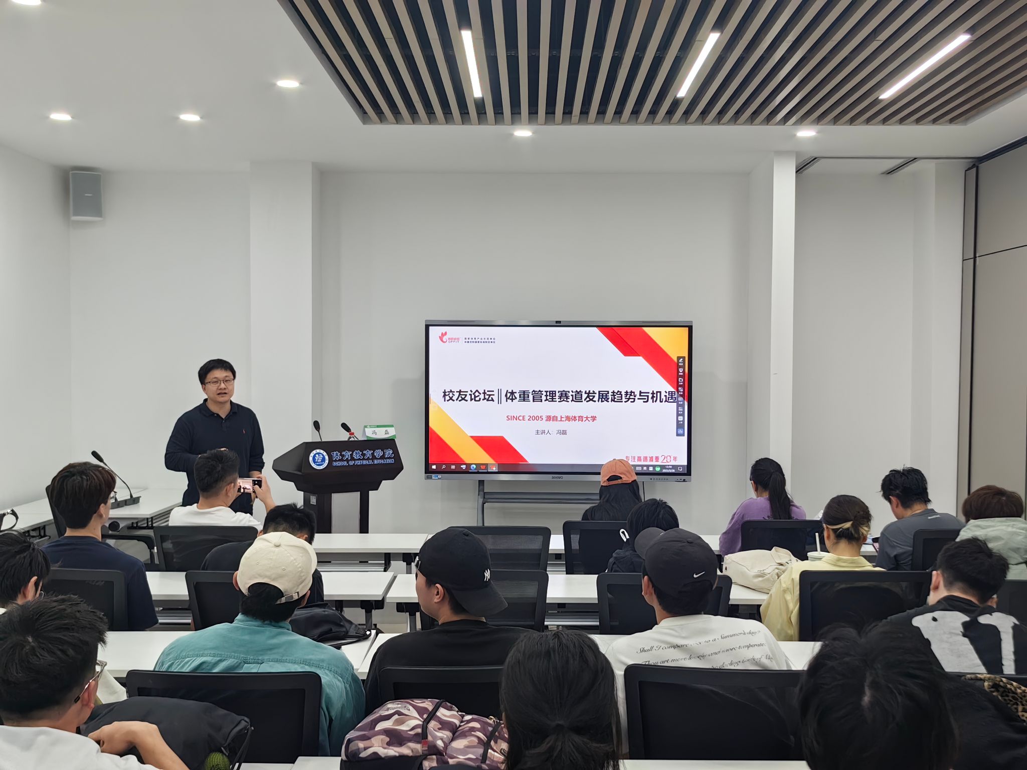 为深化产教融合、拓宽学生职业视野,助力学生精准把握行业动态,2025年3月26日,2138cn太阳集团古天乐校友论坛系列讲座特邀上海巅峰健康科技股份有限公司总经理、优秀校友冯磊,为休闲体育与社会体育指导与管理专业学生带来题为《体重管理赛道发展趋势与机遇》的专题分享。学院党委副书记、副院长曹智超主持,社体和休闲专业学生参加论坛。