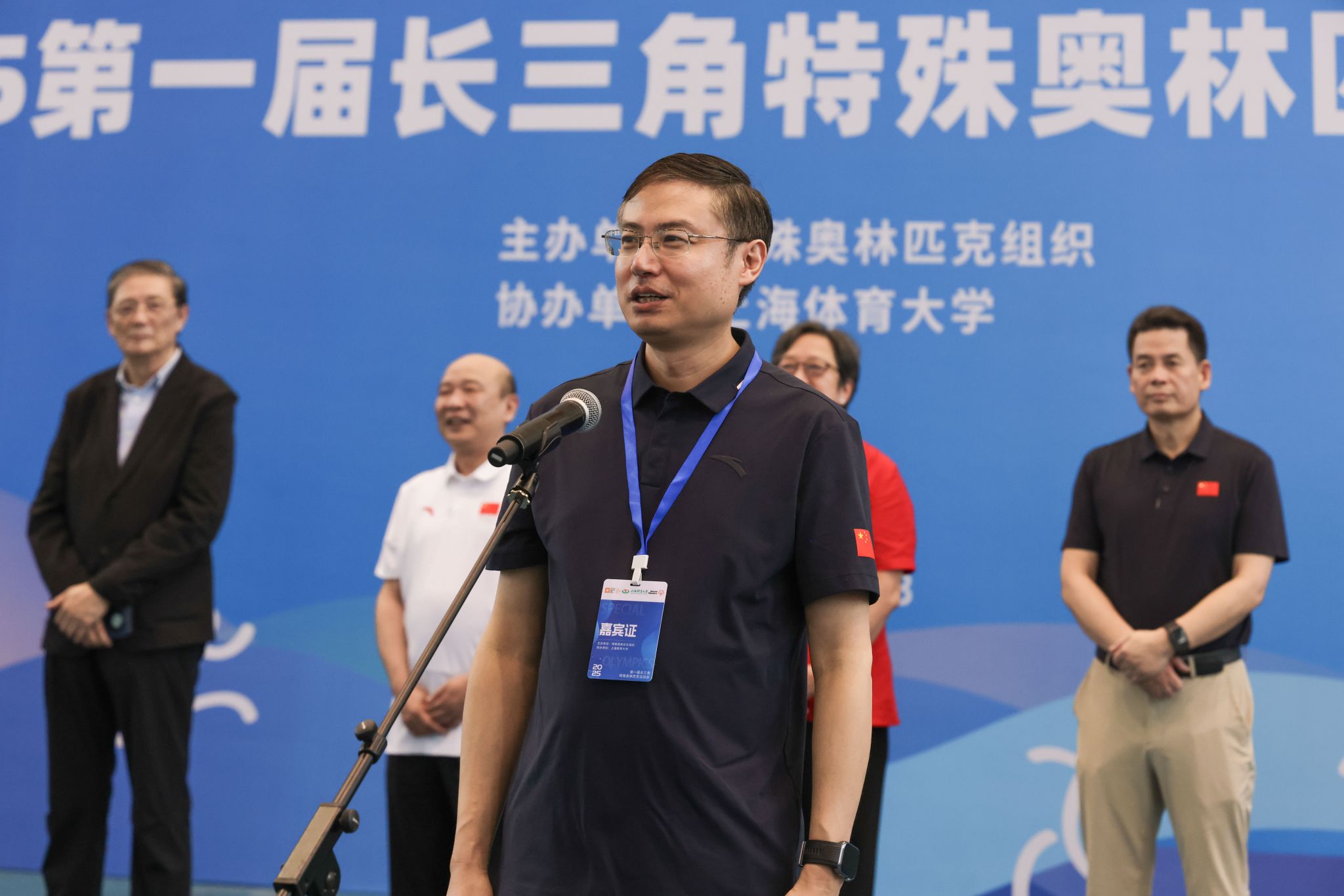 上海市残疾人文化体育促进中心(上海特奥竞赛训练中心)主任龚佳韬宣布第一届长三角特殊奥林匹克运动会开幕。