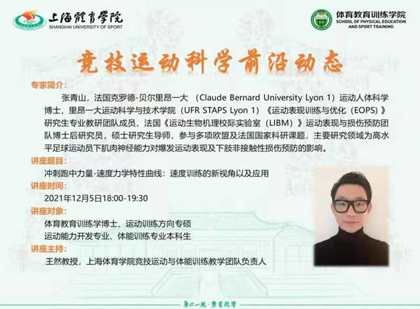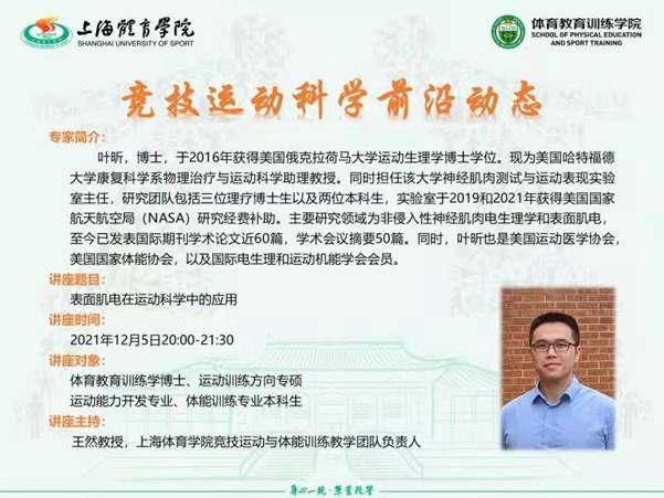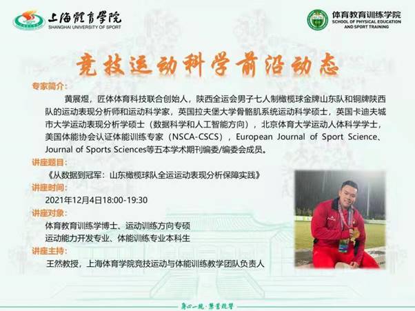 授课对象:体育教育训练学院研究生;硕博士课程,16学时,1学分。欢迎研究生选修。
