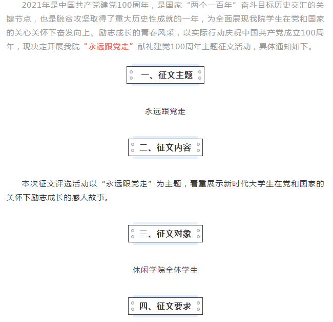 休闲学院关于开展“永远跟党走” 献礼建党100周年主题征文活动的通知